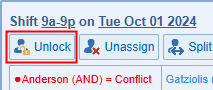 - Unlock: Shift assignments that are locked can be unlocked from the shift provider detail popup.